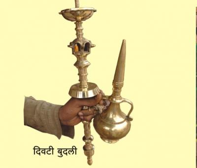६. दिवटी आणि बुधली- साधारण हातभर लांब दांडा असणारा हा छोटा दिवा दिसायला अतिशय देखणा असतो. अजूनही खंडोबा आणि देवीच्या काही मंदिरांमध्ये आरतीसाठी दिवटी आणि बुधली वापरण्यात येते. या दिव्याच्या दांड्यावर सुबक नक्षी केलेली असते.