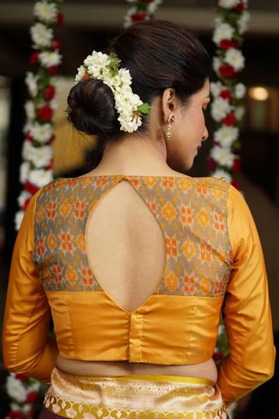 ब्लाऊज मागच्या गळा जास्त डीप हवा असेल तर तुम्ही नॉड्सहही लावू शकता.