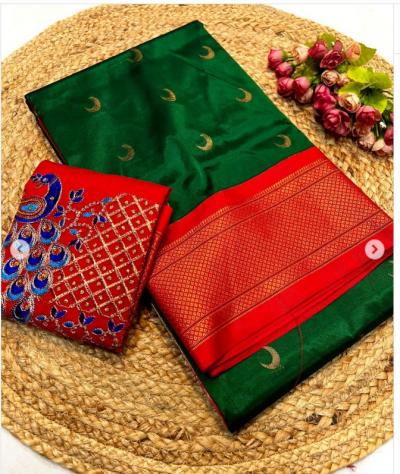ही पैठणी रेशमी आणि तिच्या भरजरी नक्षीमुळे राजेशाही लूक देते. दिवाळीच्या समारंभासाठी विशेषत: लक्ष्मीपूजन किंवा पाडव्याला तुम्ही ही साडी नेसू शकता.