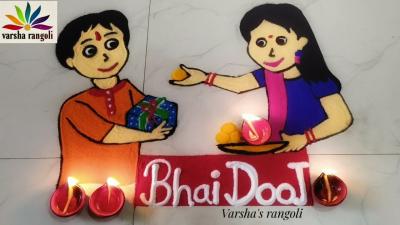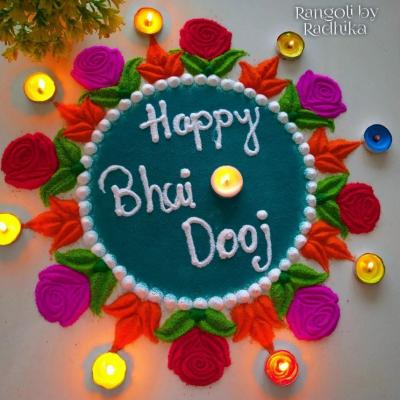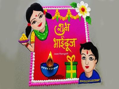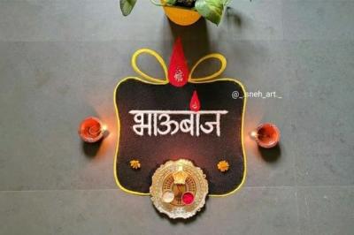 या रांगोळ्यांमध्ये तुम्ही बहिण भावाचे चित्र किंवा हॅप्पी भाऊबीज असा संदेश लिहू शकता.