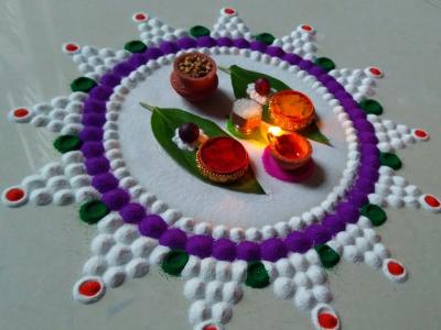 फुलांचा, पानांचा वापर करूनही तुम्ही उत्कृष्ट रांगोळी काढू शकता.