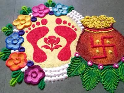 दिवाळीला (Diwali 2o22) आपण सगळेचजण दारासमोर आकर्षक रांगोळ्या काढतो पण कधी वेळेअभावी इच्छा असूनही रंगोळी काढता येत नाही. या लेखात लक्ष्मीपूजनाच्या दिवशी अगदी कमी वेळात काढता येतील अशा डिजाईन्स पाहूया. (Diwali 2022)
