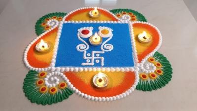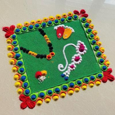 तुम्ही जिथे पूजा करणार असाल त्या ठिकाणी किंवा दरवाज्यात या आकर्षक, सोप्या रांगोळ्या काढू शकता.
