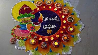 लक्ष्मी पूजन किंवा हॅप्पी दिवाळी असा मेसेजसुद्धा तुम्ही रांगोळीत लिहू शकता.