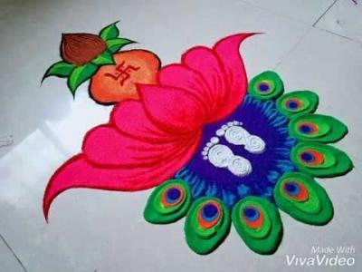 लक्ष्मीची पाऊलं, कळस, कमळ, यांची रांगोळी तुम्ही घरच्याघरी कमी वेळात काढू शकता.