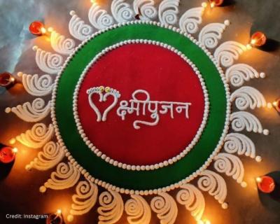लक्ष्मीपूजनाची रांगोळी पाहून मन प्रसन्न होईल आणि घराचीही शोभा वाढेल.