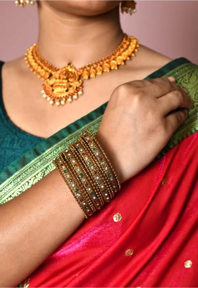 काठापदराच्या कोणत्याही साडीवर तुम्ही हिरव्या बांगड्या घालू शकता. हिरव्या बांगड्यांनी जो लूक येतो तो इतर कोणत्याही बांगड्यांनी येत नाही.