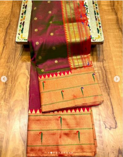 या पैठणीत प्रामुख्यानं नैसर्गिक रंगांचा वापर केला जातो. ज्यामुळे साडीला एक शाश्वत आणि समृद्ध रूप प्राप्त होते.