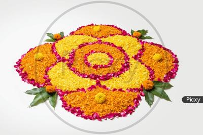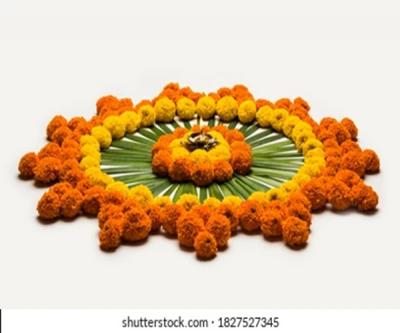 दसऱ्याच्या आसपास झेंडूची फुलं बाजारात मोठ्या प्रमाणात आलेले असतात. त्यामुळे त्यांचा वापर करून खूप छान रांगोळी काढता येऊ शकते.
