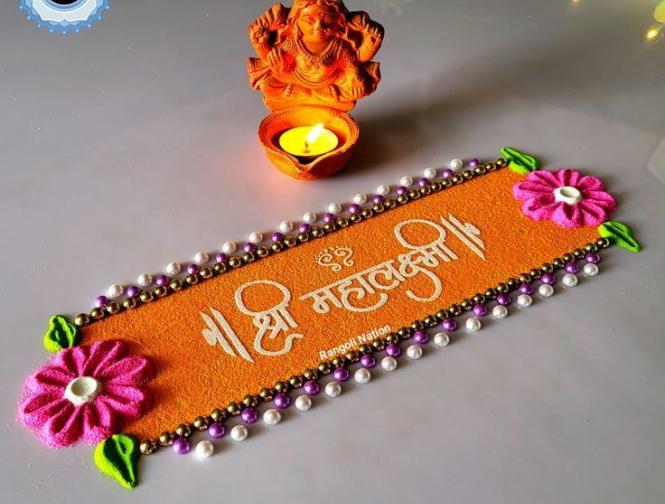 आपल्याला साधी सोपी रांगोळी काढायची असेल तर घराच्या मंदिराच्या किंवा मुख्य प्रवेशद्वारासमोर फुलांची रांगोळी काढू शकता.