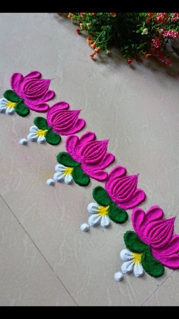 अनेकदा आपल्या घराच्यासमोर जागा कमी असते. अशावेळी बॉर्डर रांगोळी डिझाइन सुंदर दिसते. दारासमोर आपण कमळाची पारंपरिक रांगोळी काढू शकतो.