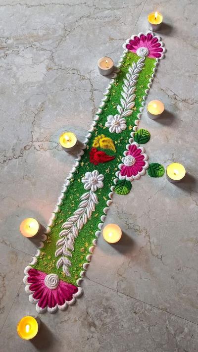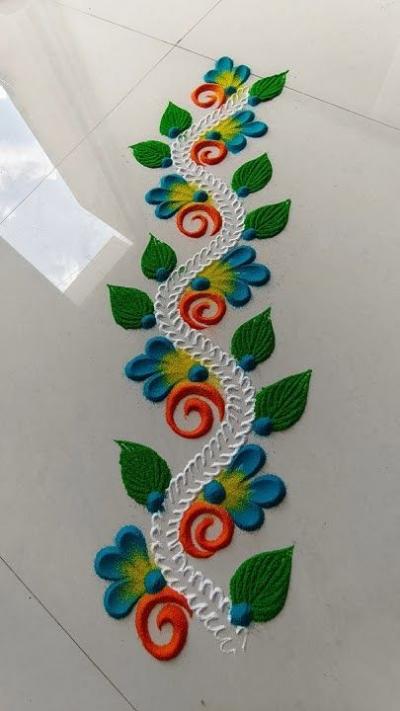जर आपल्याला दाराभोवती रांगोळी काढायची असेल तर ही लहान बॉर्डर असलेली रांगोळी घराला छान लूक देईल.