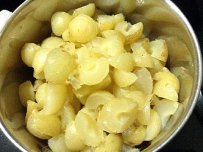 शिजवल्यानंतर आवळ्याच्या आपोआप फोडी होतात. यातील बिया काढून टाकून फोडी वेगळ्या कराव्यात आणि त्या थंड होऊ द्याव्यात.