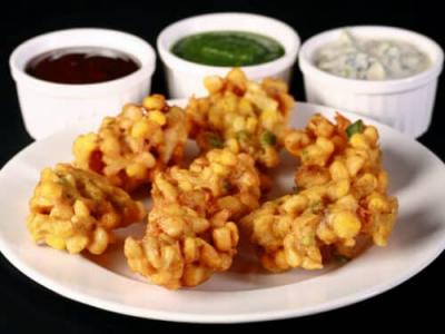 बेसन पीठात मक्याचे दाणे आणि इतर काही पदार्थ घालून छान मक्याचे पकोडे किंवा भजी करता येतात. करायला फार सोपी अशी रेसिपी आहे. अगदीच कुरकुरीत होते.