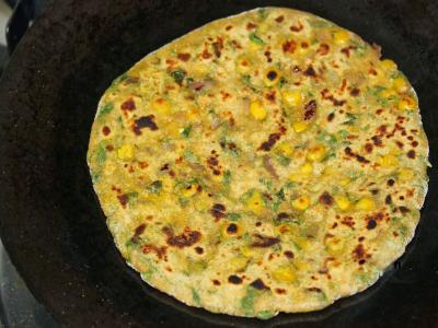 मक्याचे दाणे घालून पराठा करता येतो. अगदी झटपट होतो. त्यात चीज घातले तर चव आणखी मस्त लागते. लहान मुलांना डब्यात देण्यासाठी अगदी मस्त रेसिपी आहे.