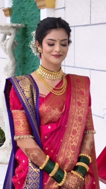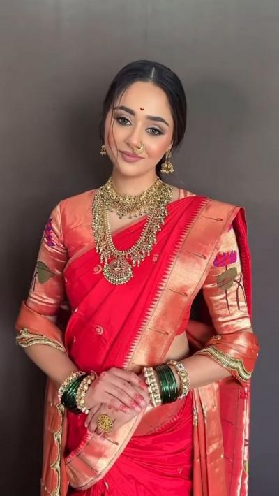 पैठणी किंवा सिल्कची साडी तुम्ही साखरपुड्यासाठी निवडू शकता. त्यावर मॅचिंग बांगड्या आणि नेकलेस निवडा.