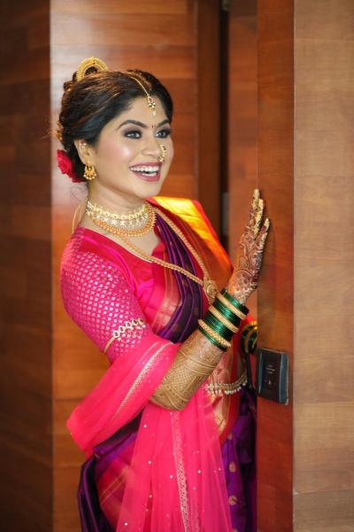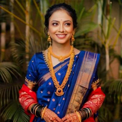 Engagement Look For Marathi Bride : सेम रंगापेक्षा कॉन्ट्रास्ट रंगाच्या साडीची निवड करा. ज्यामुळे तुमचा लूक अधिक खुलून येईल.