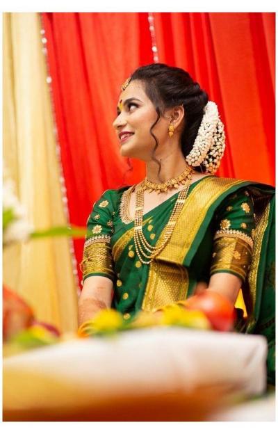 हिरवी साडी निवडणार असाल तर हिरवे आणि सोनेरी असे कॉम्बिनेशन असलेली साडी जास्त सुंदर दिसेल.