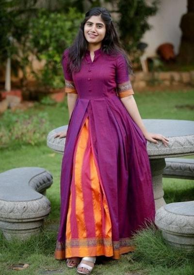 जर तुम्हाला कुर्ता आवडत नसेल तर प्लेन साडीचा असा सुंदर सिंपल ड्रेस शिवून घेऊ शकता.