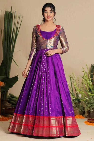 या टाईपचं जॅकेट सध्या ट्रेंड्रींग आहे. अनेकजण पैठणी साडीचं असं जॅकेट बनवून घेतात.