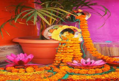 तुम्हाला जर कमळाचं फुल मिळालं तर त्याचा वापर करून अशी छानशी रचना करता येईल. घराच्या मुख्य द्वाराशी तुम्ही अशी रचना करून ठेवू शकता.
