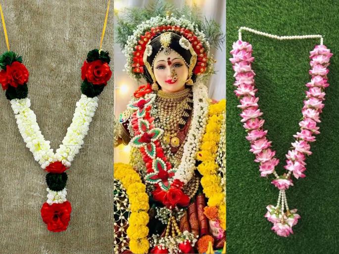 1 / 7ज्येष्ठा कनिष्ठा गौरींचे आवाहन झाल्यानंतर दुसऱ्या दिवशी जी महापुजा केली जाते, त्यादिवशी गौरींना फुलांचे छान हार घातले जातात. 2 / 7अशा नवनविन प्रकारातले कित्येक हार तुम्ही गौरींसाठी आणू शकता.3 / 7कुंदन आणि फुलं यांचा सुरेख वापर करून तयार केलेले हे हारही अतिशय देखणे आणि खूप वेगळे वाटतात. गळ्यात एखादा दागिना घालावा त्याप्रमाणे ते उठून दिसतात.4 / 7गुलाब आणि शेवंती किंवा पांढरी ॲस्टरची फुलं असं कॉम्बिनेशनही खूप उठून दिसतं. 5 / 7गुलाबाच्या पाकळ्यांचा असा भरगच्च हारसुद्धा खूप शोभून दिसतो. गौरींचं सौंदर्य अशा पद्धतीच्या हारांनी उठून दिसेल.6 / 7लालबुंद गुलाब आणि त्याच्या जोडीला पांढरा किंवा हलकासा गुलाबी गुलाब असं कॉम्बिनेशनही खूप छान दिसतं. 7 / 7गुलाब, मोगरा, निशिगंध असं कॉम्बिनेशन असणारे असे काही हारसुद्धा तुम्हाला मिळू शकतात. किंवा तुम्ही ते तुमच्या आवडीनुसार कस्टमाईज करून घेऊ शकता.