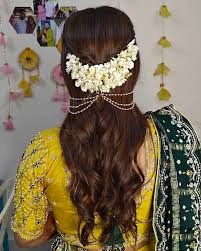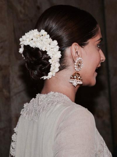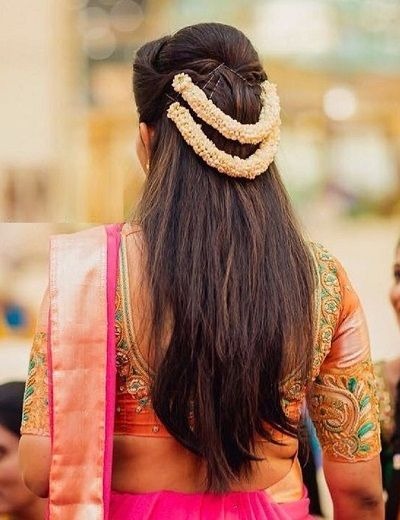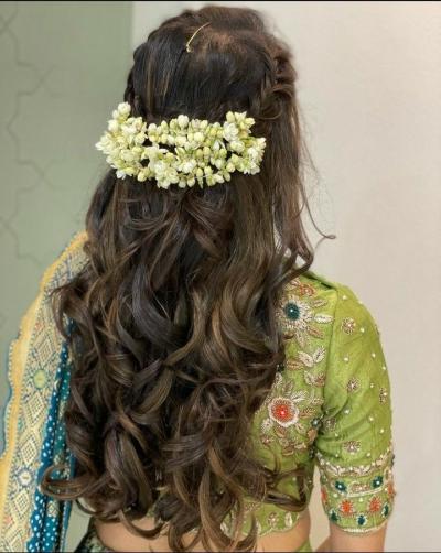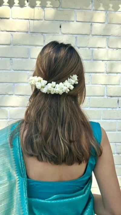 मागे बन, पुढच्या केसांना कर्ल्स करून तुम्ही सुंदर मोगऱ्याच्या फुलांचा गजरा माळू शकता.