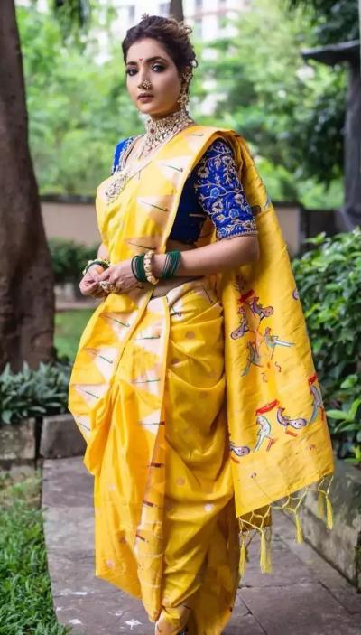 नऊवारी साडीच्या ब्लाऊजवर तुम्ही हेवी वर्क शिवून घेऊ शकता किंवा त्यावर पॅचेच लावून मिळतील.