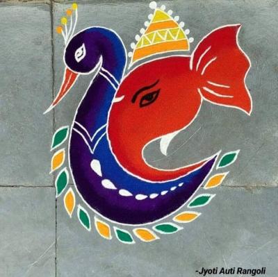 गणपती आणि मोर यांचे कॉम्बिनेशन असलेली रांगोळीसुद्धा तुम्हाला काढता येतील.