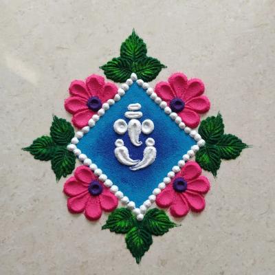 दुर्वा, जास्वंदाचं फुल असे बरेच पॅटर्न तुम्ही रांगोळीत काढू शकता.