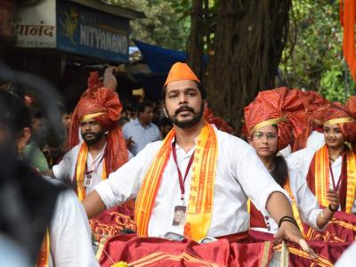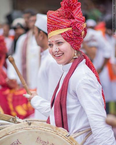 ढोल पथकांमध्ये नेहमीच दिसणारा एक अतिशय गोड चेहरा म्हणजे अभिनेत्री श्रुती मराठे. नाकात नथ, मोठी चंद्रकोर, डोक्यावर फेटा अशा थाटांत श्रुती जेव्हा ढोल हातात घेते, तेव्हा ती आणखीनच लाघवी दिसते.