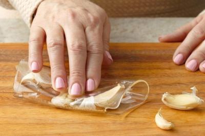 लसणाच्या पाकळ्या अर्धा तास फ्रिजरमध्ये ठेवा आणि बाहेर काढून लगेच कोमट पाण्यात घाला. तापमानातील या बदलांमुळे साल आणि लसूण यांच्यातील पकड सैल होते आणि साल कागदासारखे निघून जातात.