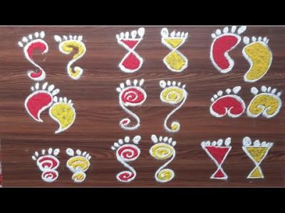 हे काही डिझाईन्स बघून घ्या. पण हे डिझाईन्स काढायला तुमच्याकडे थोडा निवांत वेळ असायला हवा. कारण पाऊलांचा आकार परफेक्ट येणं गरजेचं आहे.