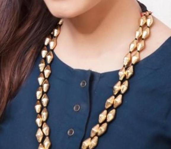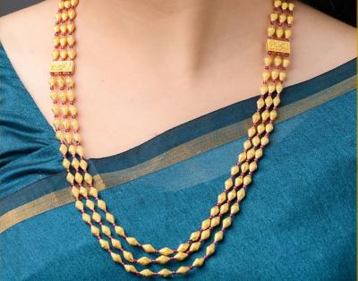 अशी तीनपदरी माळही खूप कमी सोन्यामध्ये तयार होते आणि शिवाय ती वजनानेही खूप हलकी असते.
