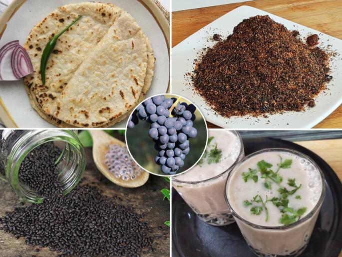1 / 8आपल्यापैकी काहीजण नवरात्रीचे संपूर्ण नऊ दिवस उपवास धरतात. उपवासाबरोबरच काहीजण हे नऊ दिवसांचे नवरंग अतिशय आवडीने व हौसेने फॉलो करतात. कपड्यांचे हे नऊ रंग फॉलो करण्यासोबतच आपल्या रोजच्या आहारातही त्या विशिष्ट रंगाच्या पदार्थांचा समावेश केल्याने आपले आरोग्य देखील चांगले राखण्यास मदत होते(Today's Color Grey : Check out 7 Nutritious Grey Foods, Include In Your Diet).2 / 8ज्वारीमध्ये फायबरचे प्रमाण हे अधिक असते. रोजच्या आहारात ज्वारीच्या भाकरीचा समावेश केल्यास गॅसेस, बद्धकोष्टता, पोट साफ न होणे, यांसारख्या अनेक पोटाच्या समस्या दूर करण्यास मदत होते. 3 / 8कारळे किंवा खुरसणी ही तेलबियांपैकी एक आहे. त्यापासून केलेली कारळ्याची चटणी हा महाराष्ट्रीय जेवणातील अस्सल गावरान पदार्थ आहे. कारळ्याची चटणी आणि ज्वारीची भाकरी खायला अतिशय पौष्टिक व चविष्ट लागते. 4 / 8आपल्या पचनक्रियेसाठी सब्जा अतिशय लाभदायक आहे. सब्जामध्ये फायबरची मात्रा भरपूर असते, ज्यामुळे पचनक्रिया सुरळीत सुरू राहते. आपण दिवसभरात कधीही सब्जाचे पाणी पिऊ शकता. यामुळे अन्नाचे पचन सहजरित्या होण्यास मदत होते. 5 / 8बाजरीच्या पिठाची भाकरी तर आपण नेहमीच खातो. परंतु काहीतरी वेगळं खायचा मूड झाला की आपण हेच बाजरीचे पीठ, रवा, दही भिजवून त्याचे झटपट डोसे तयार करुन खाऊ शकतो.6 / 8 आपण ज्वारी - बाजरी - नाचणी ही तिन्ही पीठ वापरुन त्याचे छान पौष्टिक आंबील बनवू शकतो. ज्याला इंग्रजीत 'ब्रॉथ' म्हणतात तसा हा प्रकार आहे, जाडसर पेय,भूक आणि तहान दोन्ही शमवण्यासाठी आंबील पिणे हे फायदेशीर ठरते. 7 / 8काळी उडदाची डाळ ही आरोग्यासाठी अनेक स्वादिष्ट व फायदेशीर डाळींपैकी एक आहे. आपण काळ्या उडदाच्या डाळीला खमंग फोडणी देऊन त्याची चविष्ट व रुचकर उसळ बनवून खाऊ शकता. काळ्या उडीद डाळीमध्ये मॅग्नेशियम, पोटॅशियम, लोह आणि कॅल्शियम इत्यादी आवश्यक खनिजे आणि जीवनसत्त्वे असतात.8 / 8काळ्या द्राक्षांचा रोजच्या डाएटमध्ये समावेश केल्याने शरीरातील अशक्तपणा कमी होण्यास मदत होते. कारण त्यात भरपूर प्रमाणात लोह, व्हिटॅमिन - बी असते. हे लाल रक्तपेशींच्या वाढीस मदत करते.