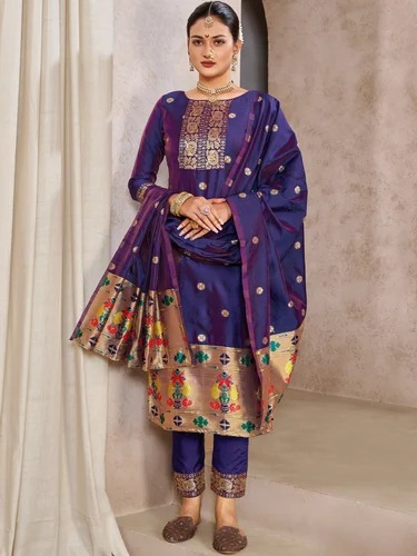 पैठणीचा कुर्ता आणि पॅन्ट शिवून तुम्ही त्यावर कॉन्ट्रास्ट रंगाची ओढणीसुद्धा घेऊ शकता.