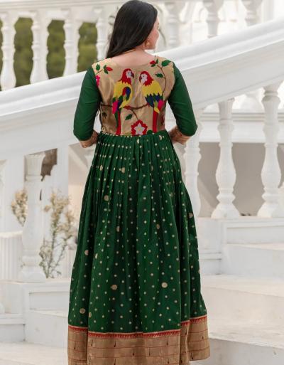 आजकाल पैठणी जॅकेट्स बरेच मागणीत आहेत. तुम्ही पैठणी जॅकेट कोणत्याही साध्या कुर्त्यावरही घालू शकता.