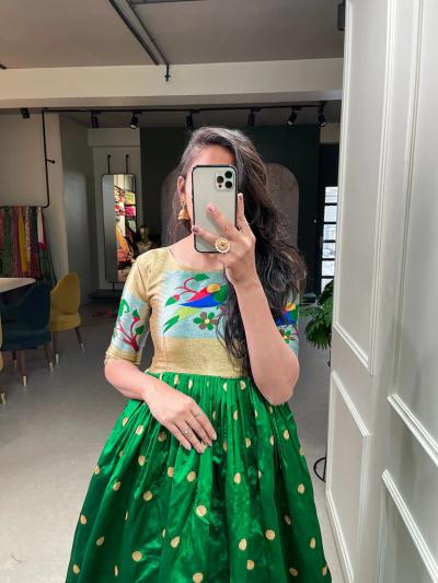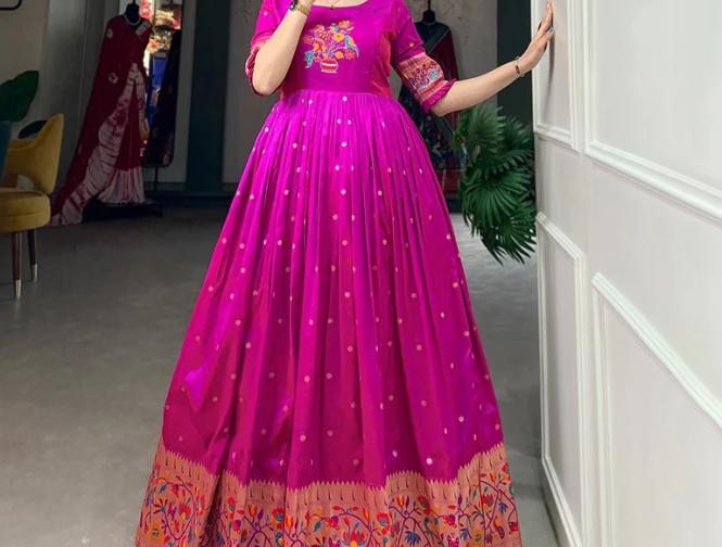 पैठणी साडीच्या कापडापासून बनवलेले ड्रेसेस पारंपारीक कारागिरी आणि अधुनिक फॅशन यांचा एक सुंदर मिलाफ आहेत.