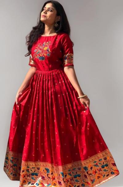 कपाटात असलेल्या जुन्या आईच्या किंवा आजीच्या पैठणीचा तुम्ही सुंदर असा ड्रेस शिवू शकता.