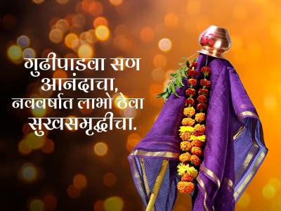 गुढीपाडवा सण आनंदाचा, नववर्ष लाभो ठेवा सुखसमृद्धीचा. गुढीपाडवा आणि नववर्षाच्या हार्दिक शुभेच्छा!