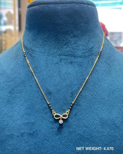 लांब जड मंगळसुत्रांऐवजी सध्या शॉर्ट मंगळसूत्र घालणं महिला पसंत करतात. याची लांबी कमी असते आणि कमी ग्रॅममध्ये बनवता येऊ शकतं. रोज वापरायला उत्तम पर्याय असतो.(18 carat gold short mangalsutra for daily wear Beautiful look) तुम्ही गुरूपुष्यामृत योगासाठी म्हणजेच २१ ऑगस्टला ही मंगळसुत्र विकत घेऊ शकता.