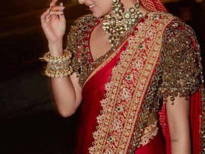नताशाच्या साडीसोबतच तिच्या ब्लाऊजची देखील तितकीच चर्चा नेटकऱ्यांमध्ये होत आहे. नताशाचा ब्लाऊज खूपच आकर्षक आणि शाही दिसत होता. या ब्लाउजच्या बाह्यांना ज्वेलरीने सजविले होते. या ब्लाऊजला जडाऊ ज्वेलरी पिसेस व झुमक्यांनी सजवून अधिक रॉयल लूक देण्यात आला होता. हा ब्लाऊज तिने खास स्वतःसाठी कस्टम मेड करून बनवून घेतला होता.