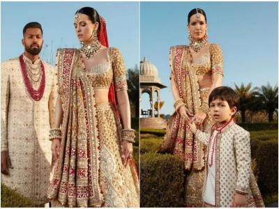 या लग्नादरम्यान नताशाने परिधान केलेल्या शाही लग्न जोड्याची सध्या सोशल मीडियावर फारच चर्चा रंगली आहे.