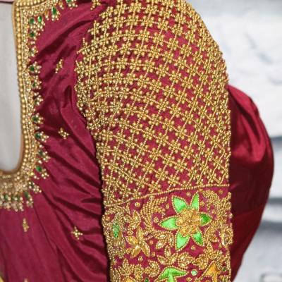 ब्लाऊजच्या कडांना वेगवेगळ्या रंगाचे फुलांचे वर्कसुद्धा उठून दिसते. साडीच्या रंगानुसार तुम्ही फुलं लावू शकता