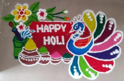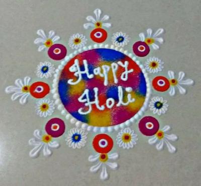 होळीच्या दिवशी छोटी संस्कारभारती रांगोळी काढून तुम्ही त्यावर हॅप्पी होळी किंवा धुळवडीच्या शुभेच्छा असा संदेश लिहू शकता.