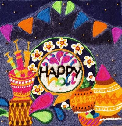होळीसाठी रांगोळी काढत असताना तुमच्याकडे उपलब्ध असलेल्या सर्व रंगाचा वापर करण्याचा प्रयत्न करा जेणेकरून धुलविंदनाच्या रंगांप्रमाणे रंगेबिरंगी फिल रांगोळीला येईल.