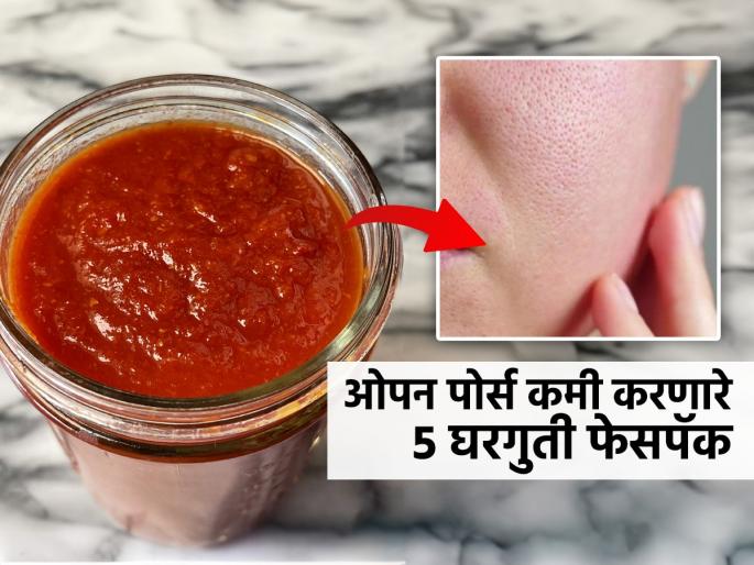 टोमॅटोमध्ये असणारे लायकोपीन आणि ॲस्ट्रिंजंट घटकही ओपन पोअर्स कमी करून त्वचा टाईट करण्यासाठी उपयुक्त आहेत. यासाठी टोमॅटो मिक्सरमधून बारीक करा. ही प्युरी चेहऱ्याला लावा आणि सुकत आली की चेहरा धुवून टाका.