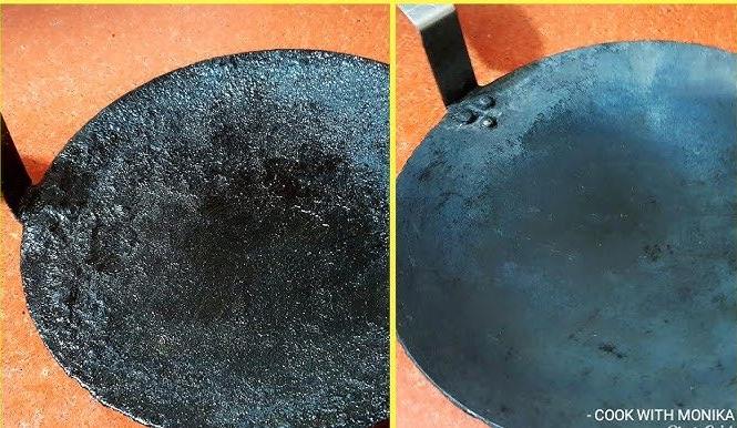 सगळ्यात आधी तवा गरम करुन त्यावर चमचाभर मीठ घाला. आता अर्धा लिंबू घेऊन ते मीठासोबत तव्यावर घासून घ्या. त्यानंतर त्यावर गरम पाणी ओता आणि ५ मिनिटे राहू द्या. ज्यामुळे डाग सहज निघतील. काथ्याने घासल्यास तवा लख्ख होईल.