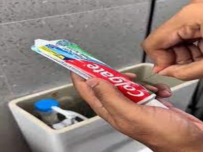 सर्वातआधी कोलगेट टूथपेस्टची ट्यूब घ्या आणि सेफ्टी पिनच्या मदतीने त्या ट्यूबवर लहान छिद्रे करुन घ्यावीत. त्यानंतर ती ट्यूब हलक्या हाताने दाबून त्या छिद्रांमधून थोडीशी टूथपेस्ट बाहेर येऊ द्यावी. यानंतर, ती टूथपेस्टची ट्यूब थेट टॉयलेटच्या फ्लश टँकमध्ये टाकावी.