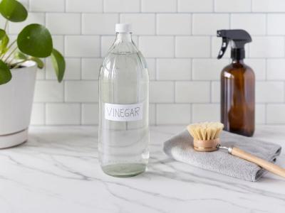 व्हाईट व्हिनेगर हे एक उत्तम नैसर्गिक दुर्गंधीनाशक आहे. एका स्प्रे बाटलीमध्ये व्हिनेगर आणि पाणी समान प्रमाणात घेऊन मिसळा. त्यानंतर फ्लोअर मॅटवर हे द्रावण संपूर्णपणे फवारून घ्या. आता ३० मिनिटांसाठी ही मॅट तशीच ठेवून द्यावी. त्यानंतर फ्लोअर मॅट उन्हात स्वच्छ वाळवून घ्यावे. फ्लोअर मॅट संपूर्णपणे सुकल्यानंतर त्यातून येणारा कुबट वास दुर्गंधी निघून जाईल.
